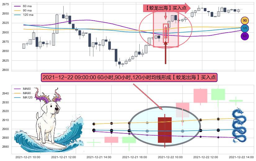 形态多维评估: ⚀ 2021-12-22 09:00:00小时显现 60小时-90小时-120小时均线 【蛟龙出海】买入点 看多信号,后市看涨,买入