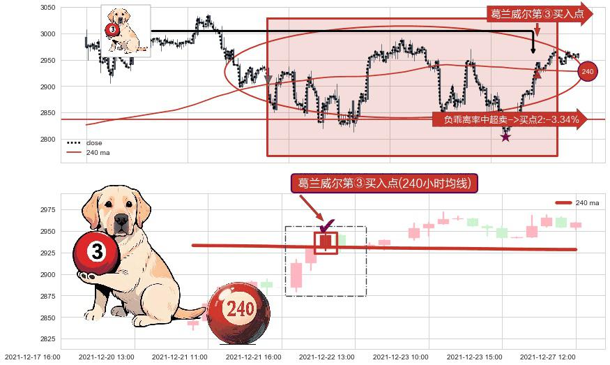 形态多维评估: ⚀ 2021-12-22 11:00:00-小时显现 葛兰威尔均线 240小时均线 第③买入点 上升趋势的中继信号,后市看涨,买进信号