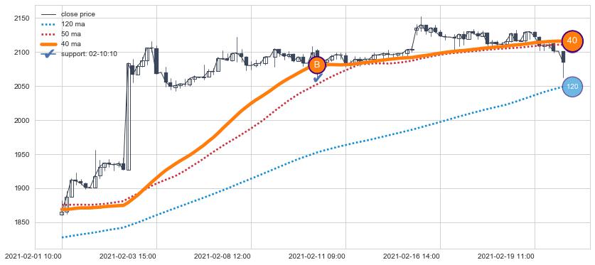 上涨趋势02-01 10:00-02-22 09:00,均线40确认关键支撑1处