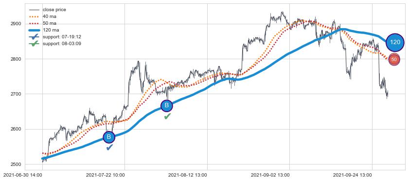 上涨趋势06-30 14:00-09-29 13:00,均线120确认关键支撑2处