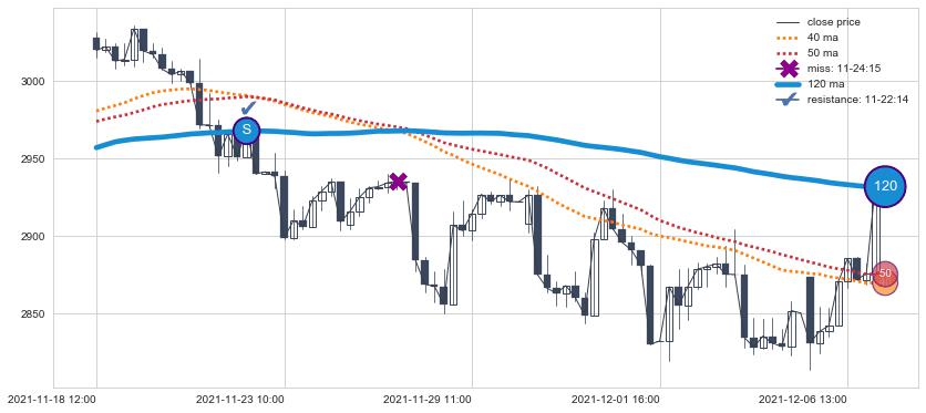 下跌趋势11-18 12:00-12-07 09:00,均线120确认关键阻力1处