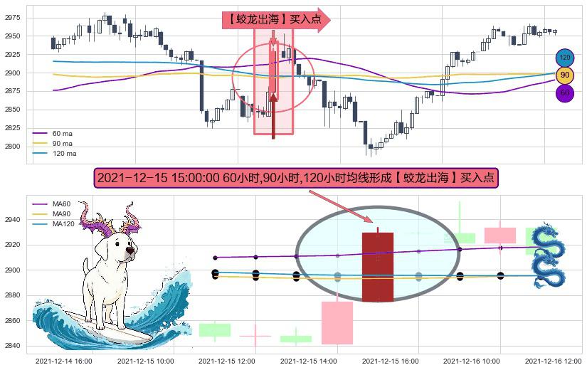 形态多维评估: ⚀ 2021-12-15 15:00:00小时显现 60小时-90小时-120小时均线 【蛟龙出海】买入点 看多信号,后市看涨,买入