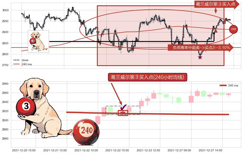 形态多维评估: ⚀ 2021-12-22 14:00:00-小时显现 葛兰威尔均线 240小时均线 第③买入点 上升趋势的中继信号,后市看涨,买进信号