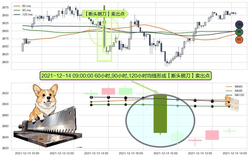 形态多维评估: ⚀ 2021-12-14 09:00:00小时显现 60小时-90小时-120小时均线 【断头铡刀】卖出点 看空信号,后市看跌,卖出