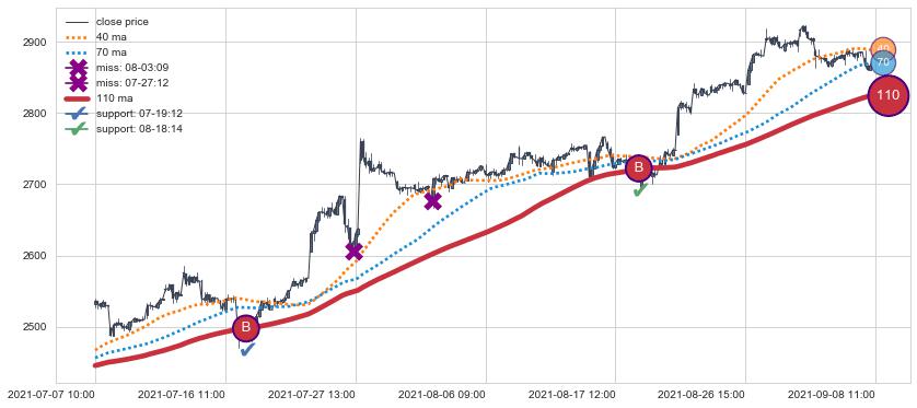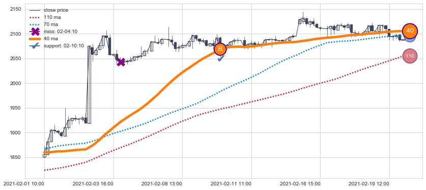 上涨趋势07-07 10:00-09-08 11:00,均线110确认关键支撑2处