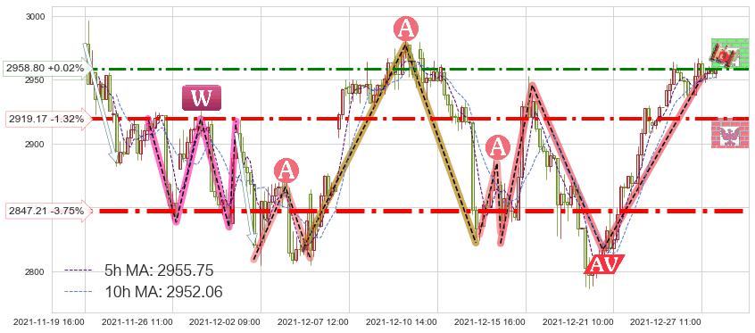 ♘ 阻力价格位2958.80,可信任强度57.07%,距离最后交易2021-12-27 15:00形成的收盘价格2958.13相差 +0.02%