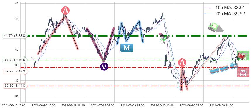 ♘ 阻力价格位38.63,可信任强度45.48%,距离最后交易2021-09-09 14:00形成的收盘价格38.56相差 +0.19%