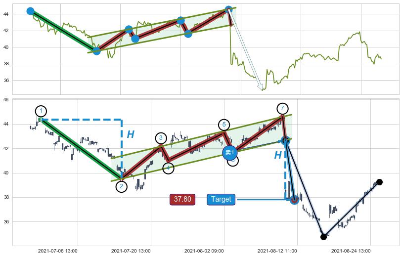 ➣ 最小中继整理跌幅→𝐇: 4.86 (𝐇旗杆的长度:旗杆起点→顶点)