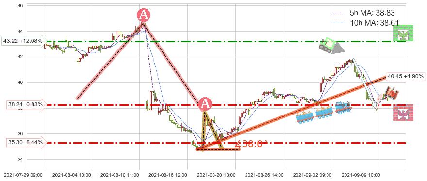 ♞ 5小时均线:38.83,10小时均线:38.61→ 快线>慢线
