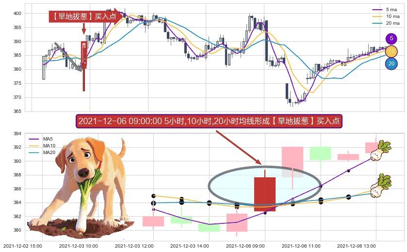 形态多维评估: ⚀ 2021-12-06 09:00:00小时显现 5小时-10小时-20小时均线 【旱地拔葱】买入点 看多信号,后市看涨,买入