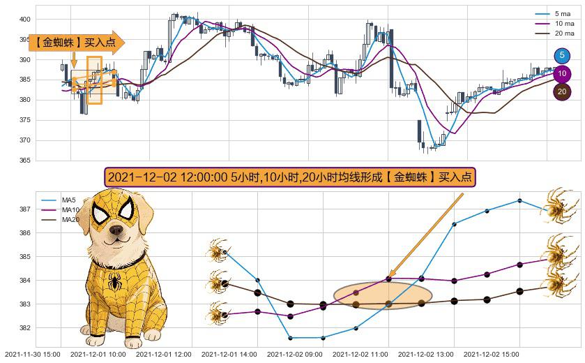 形态多维评估: ⚀ 2021-12-02 12:00:00小时显现 5小时-10小时-20小时均线 【金蜘蛛】买入点 看多信号,后市看涨,买入
