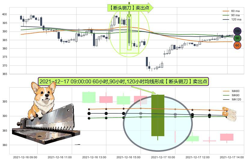 形态多维评估: ⚀ 2021-12-17 09:00:00小时显现 60小时-90小时-120小时均线 【断头铡刀】卖出点 看空信号,后市看跌,卖出