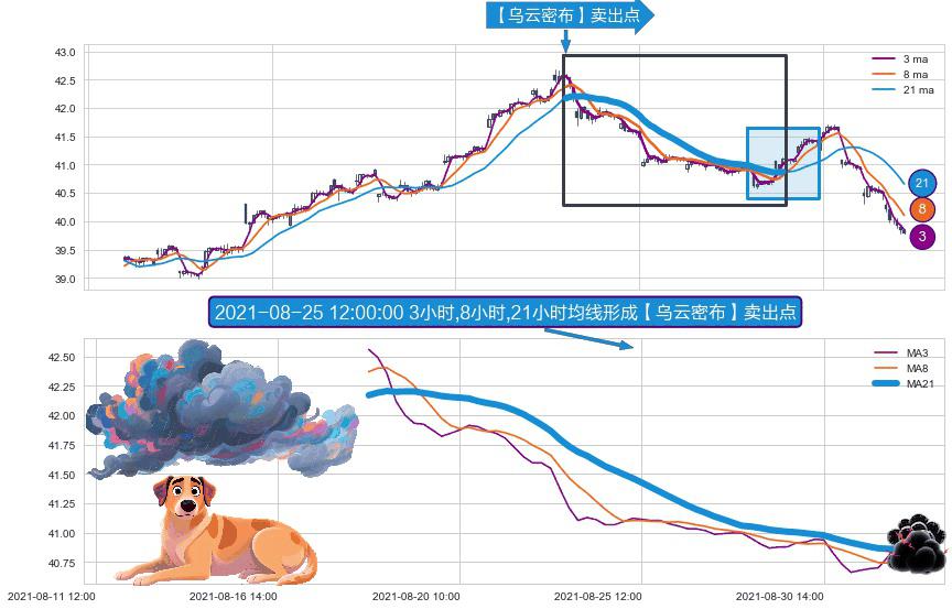 ⚀ 2021-08-18 12:00:00小时-2021-09-01 11:00:00小时显现 3小时-8小时-21小时均线 【乌云密布】卖出点 看空信号,后市看跌,卖出