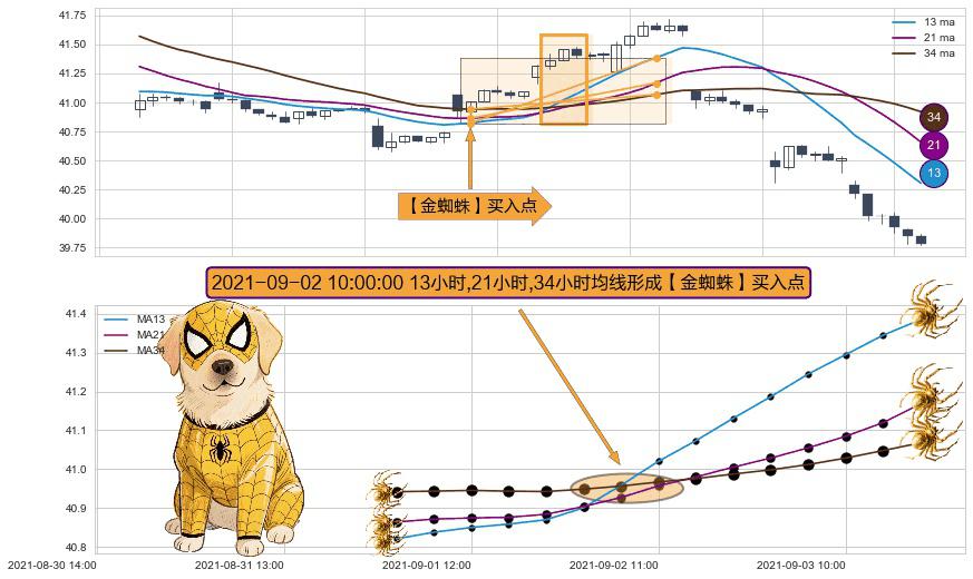 ⚀ 2021-09-02 10:00:00小时显现 13小时-21小时-34小时均线 【金蜘蛛】买入点 看多信号,后市看涨,买入