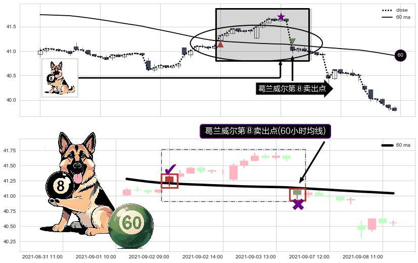 ⚀ 2021-09-07 09:00:00-小时显现 葛兰威尔均线 60小时均线 第⑧卖出点 下降趋势的中继信号,后市看跌,卖出信号