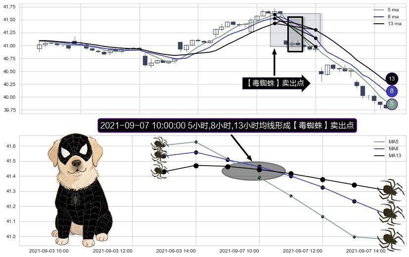 ⚀ 2021-09-07 10:00:00小时显现 5小时-8小时-13小时均线 【毒蜘蛛】卖出点 看空信号,后市看跌,卖出