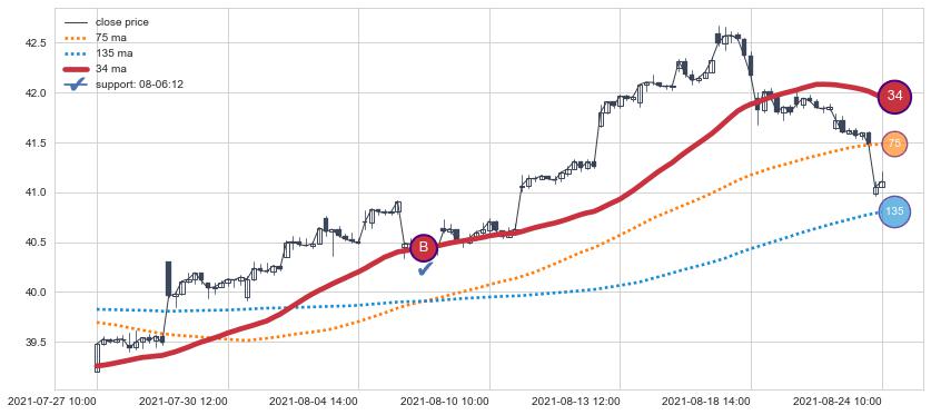 ⚀ 中期均线MA21上穿长期均线MA34形成的交叉是标准 黄金交叉