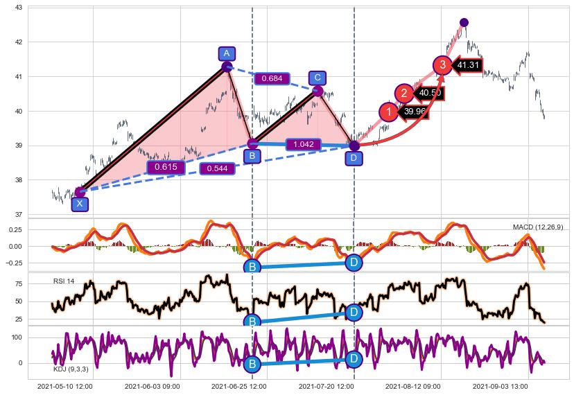 ➢ 谐波价格D点比B点低 ⤵,【KDJ】指标D点比B点高 ⤴️