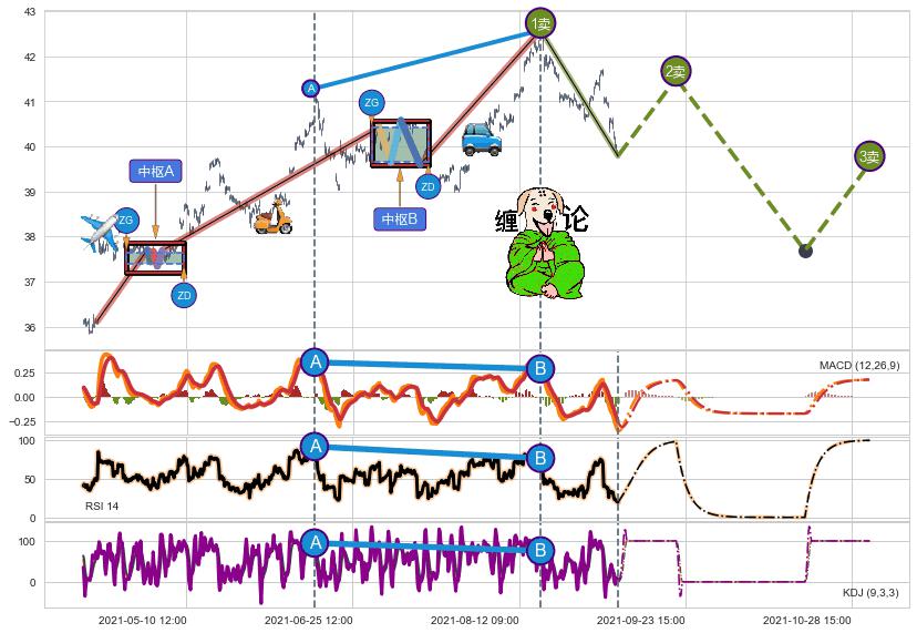 | 9 🅚:【战机起航】卖出点 ➕ ☯️:缠论买卖点上升缠中枢AB形成后猜想拐点1卖已到达,猜想后续持续下跌(均值回复) ☞ 看空信号 ⇥ 【均线】交织【图形】⇥ 综合量化分数: 35 | > |