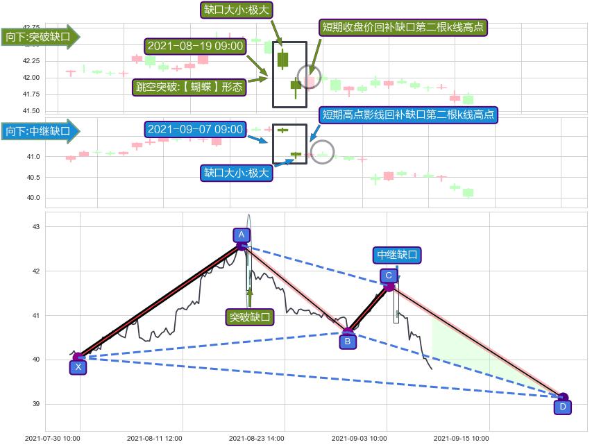 ➢ 【蝴蝶】形态 🔜 中继缺口 🔜 突破缺口 综合量化分数:42.74 【偏空】