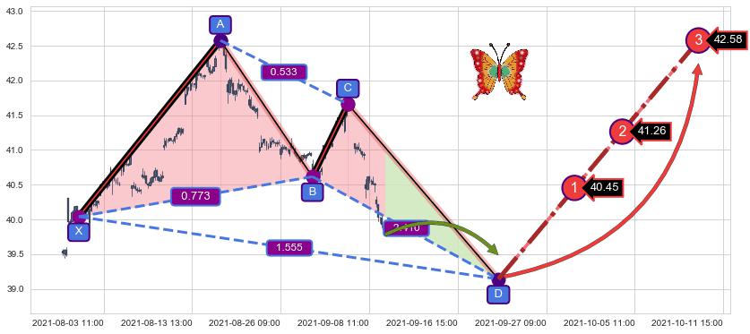 ➣ 未完成【蝴蝶】形态起点X: 07-30:09, 已到达C点: 09-03:11, 预测最终D点: 09-21:14, 共238交易小时