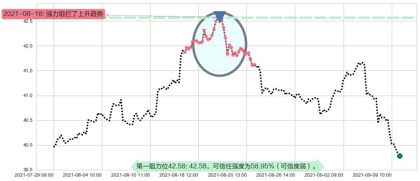 ♘ 阻力价格位42.58,可信任强度58.95%,距离最后交易2021-09-09 14:00形成的收盘价格39.78相差 +7.03%