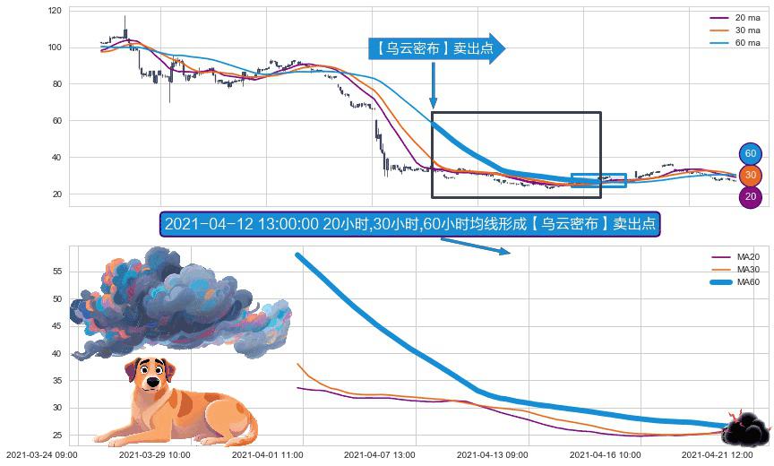⚀ 2021-04-01 10:00:00小时-2021-04-21 09:00:00小时显现 20小时-30小时-60小时均线 【乌云密布】卖出点 看空信号,后市看跌,卖出