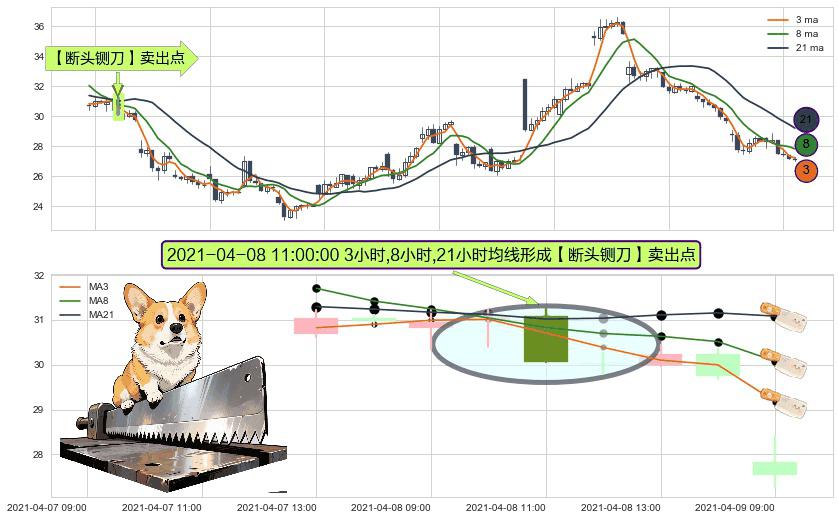 ⚀ 2021-04-08 11:00:00小时显现 3小时-8小时-21小时均线 【断头铡刀】卖出点 看空信号,后市看跌,卖出