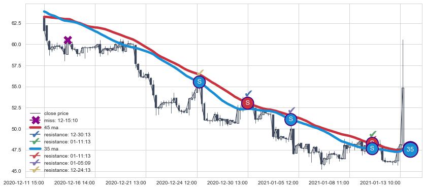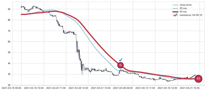 ⚂ 2021-04-26 09:00:00-小时均线向上突破,2021-05-04 10:00:00-小时重新下穿均线破位,均线阻力再次生效