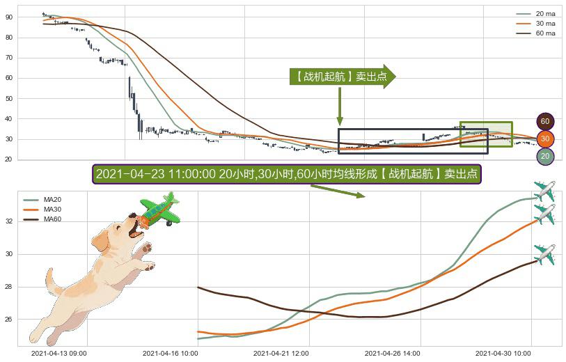 ⚀ 2021-04-16 10:00:00小时-2021-04-30 11:00:00小时显现 20小时-30小时-60小时均线 【战机起航】卖出点 看空信号,后市看跌,卖出