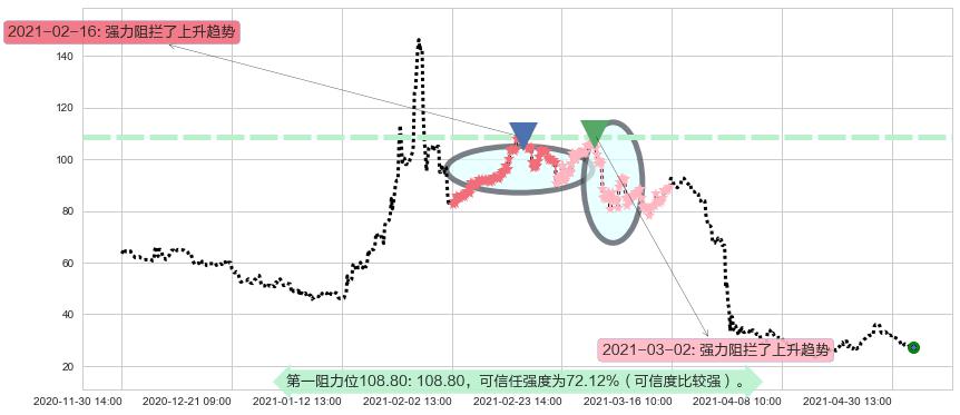 ♘ 阻力价格位108.80,可信任强度72.12%,距离最后交易2021-05-05 14:00形成的收盘价格27.07相差 +301.91%