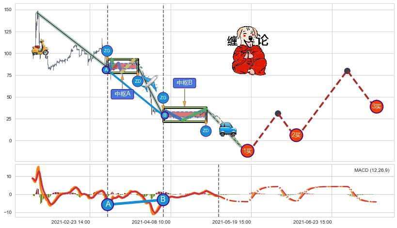 ➣ 【未完成】缠论 起点:01-27:13, 完成第1中枢A,完成第2中枢B,到达05-05:14