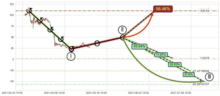 ➣ 大趋势循环浪继续向下概率43.54%