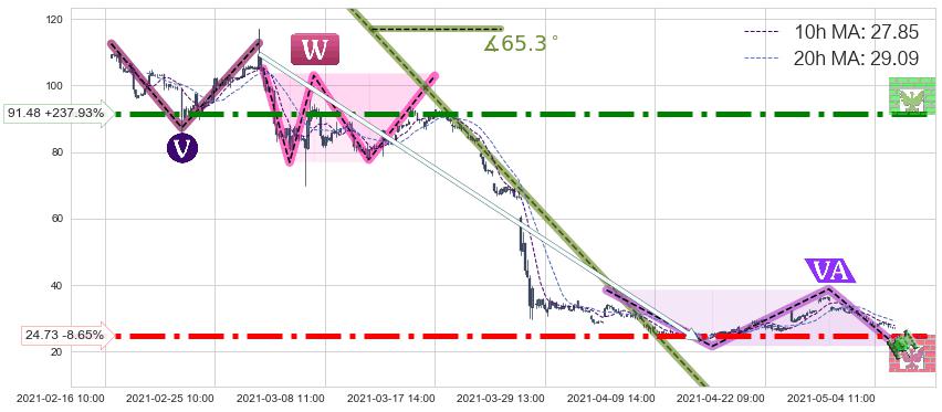 ♘ 支撑价格位24.73,可信任强度94.87%,距离最后交易2021-05-05 14:00形成的收盘价格27.07相差 -8.65%