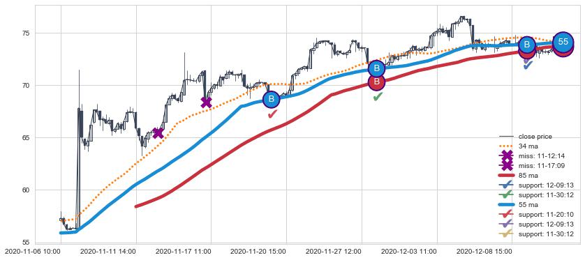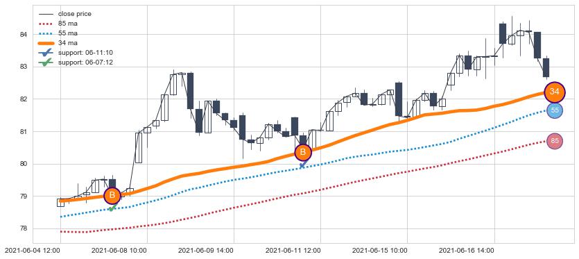 上涨趋势06-04 12:00-06-17 14:00,均线34确认关键支撑2处
