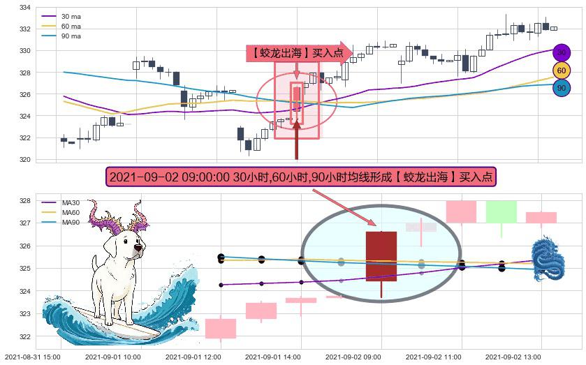 ⚀ 2021-09-02 09:00:00小时显现 30小时-60小时-90小时均线 【蛟龙出海】买入点 看多信号,后市看涨,买入