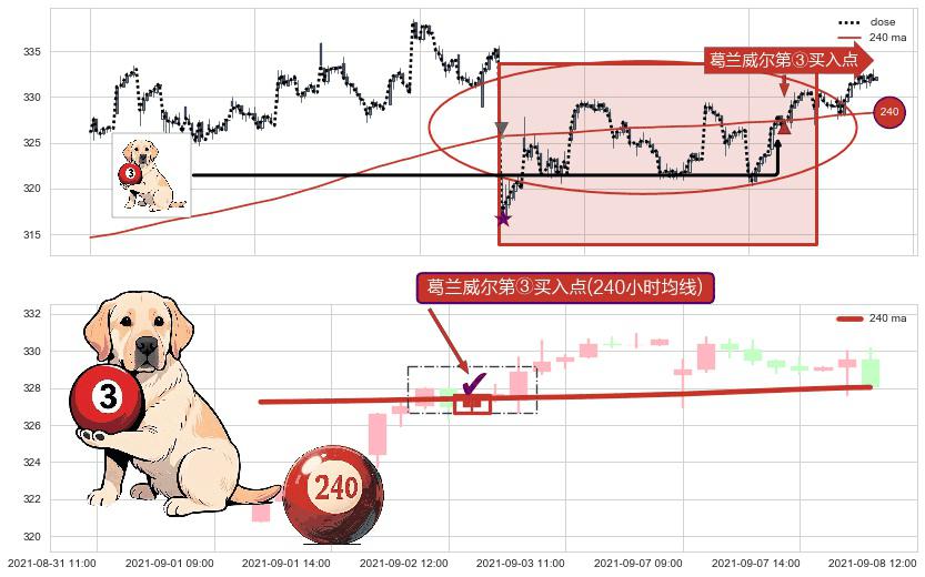 ⚀ 2021-09-02 13:00:00-小时显现 葛兰威尔均线 240小时均线 第③买入点 上升趋势的中继信号,后市看涨,买进信号