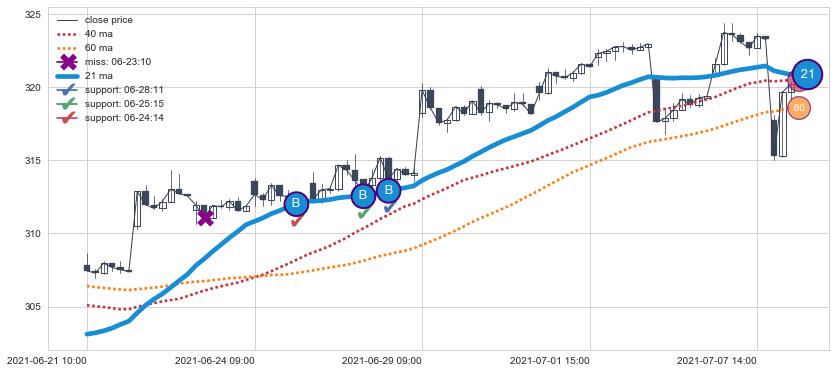 ⚀ 2021-08-02 14:00:00小时-2021-08-13 14:00:00小时显现 60小时-90小时-120小时均线 【烘云托月】买入点 看多信号,后市看涨,买入