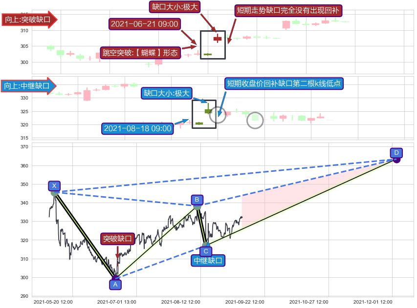 ➢ 跳空突破【蝴蝶】形态关键点后,后续非关键走势也无缺口回补迹象,突破缺口可信度提高