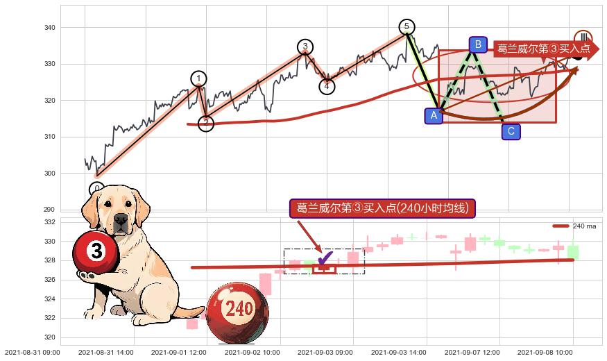 ➣ D点拟合预测价格363.29,距离最后交易收盘价格332.22相差 +9.35%