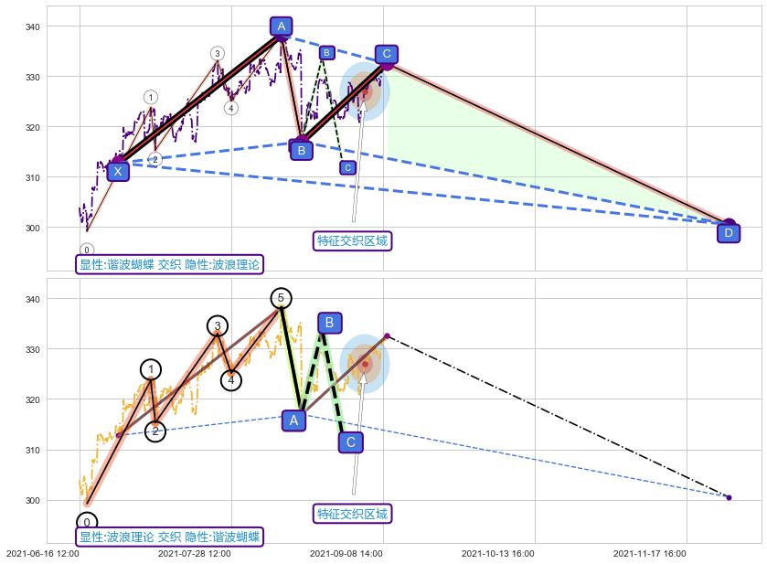 ➣ D点拟合预测价格300.52,距离最后交易收盘价格332.22相差 -9.54%