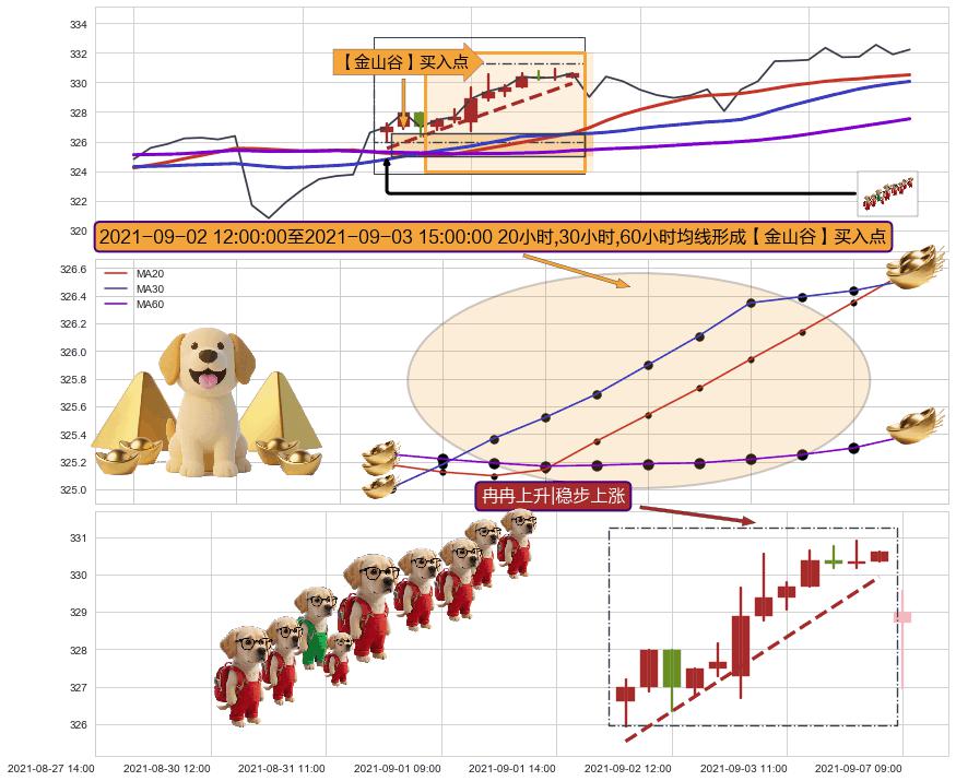 ♞ 10小时均线:331.69,20小时均线:330.51→ 快线>慢线