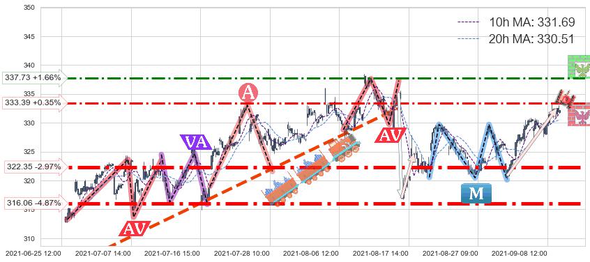 ♘ 阻力价格位337.73,可信任强度55.23%,距离最后交易2021-09-09 15:00形成的收盘价格332.22相差 +1.66%