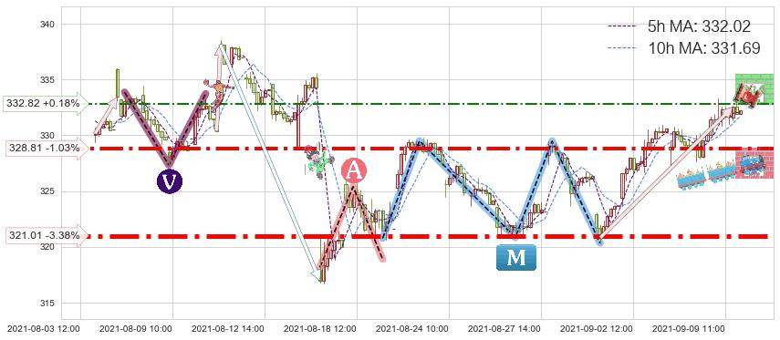 ♘ 阻力价格位332.82,可信任强度51.28%,距离最后交易2021-09-09 15:00形成的收盘价格332.22相差 +0.18%