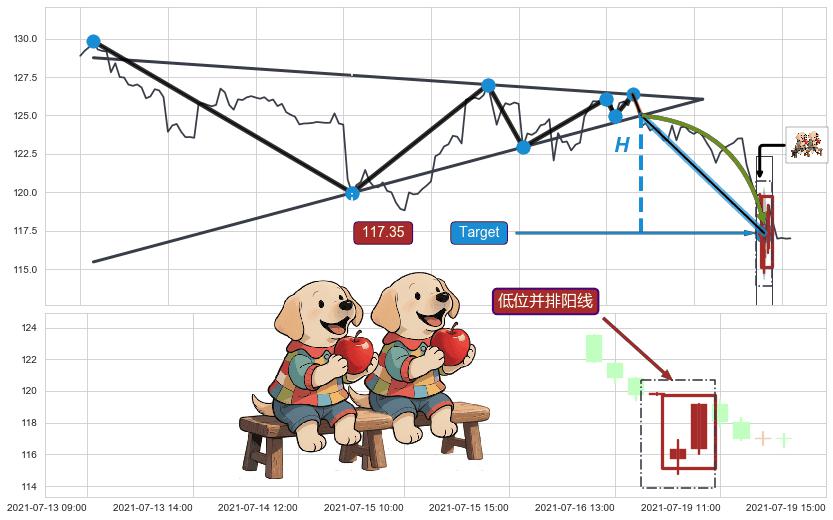 ➢ 收盘价(07-19:10: 119.20 )→回踩→第二根k线高点(07-19:09: 116.88 )