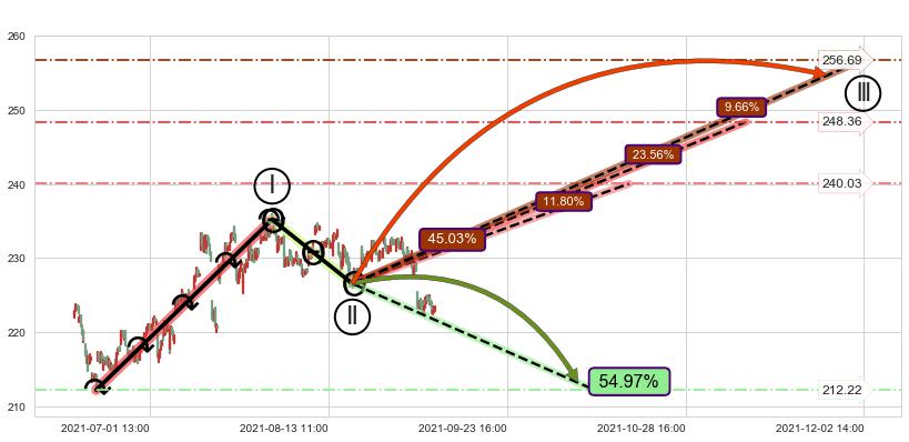 ➣ 循环浪继续向上【平均值】位置(11-10:12, 248.36),匹配聚类样本比例52.33%, 可能性概率23.56%