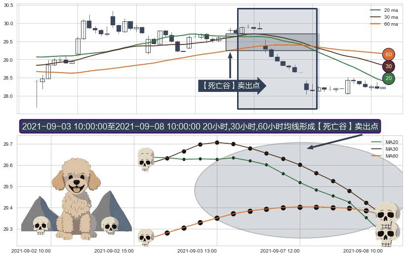 ⚀ 2021-09-03 11:00:00-小时至2021-09-08 10:00:00-小时显现 20小时-30小时-60小时均线 【死亡谷】卖出点 看空信号,后市看跌,卖出