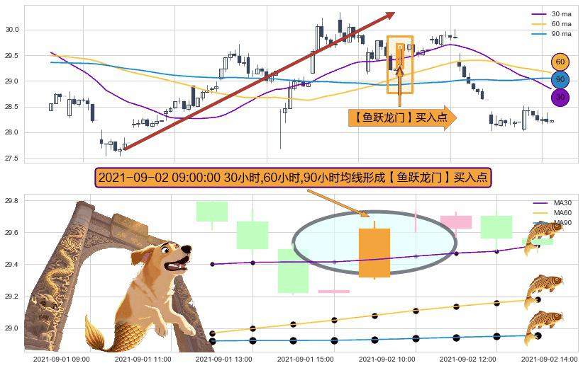 ⚀ 2021-09-02 09:00:00小时显现 30小时-60小时-90小时均线 【鱼跃龙门】买入点 看多信号,后市看涨,买入