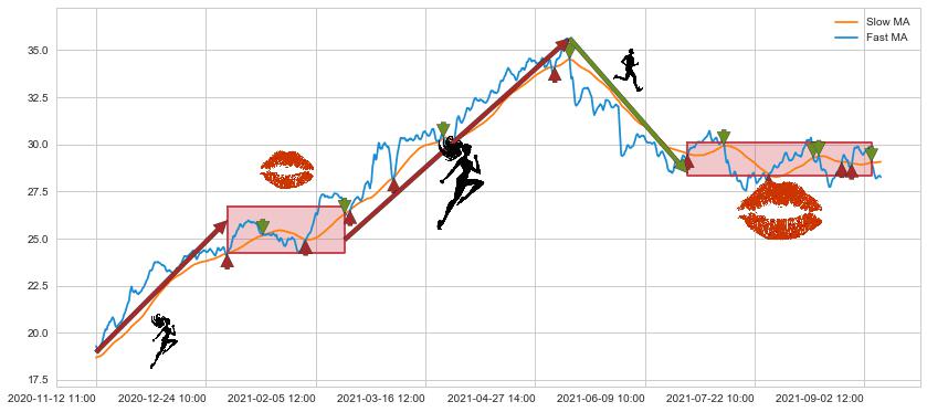 01-05 09:00至02-17 14:00 慢线与快线多次接触,存在上下穿越,有缠绕