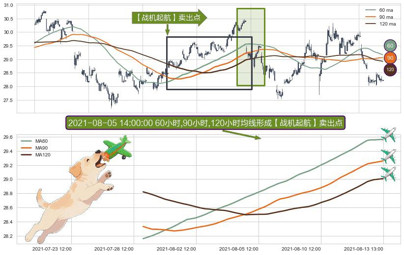 ⚀ 2021-07-28 15:00:00小时-2021-08-13 13:00:00小时显现 60小时-90小时-120小时均线 【战机起航】卖出点 看空信号,后市看跌,卖出